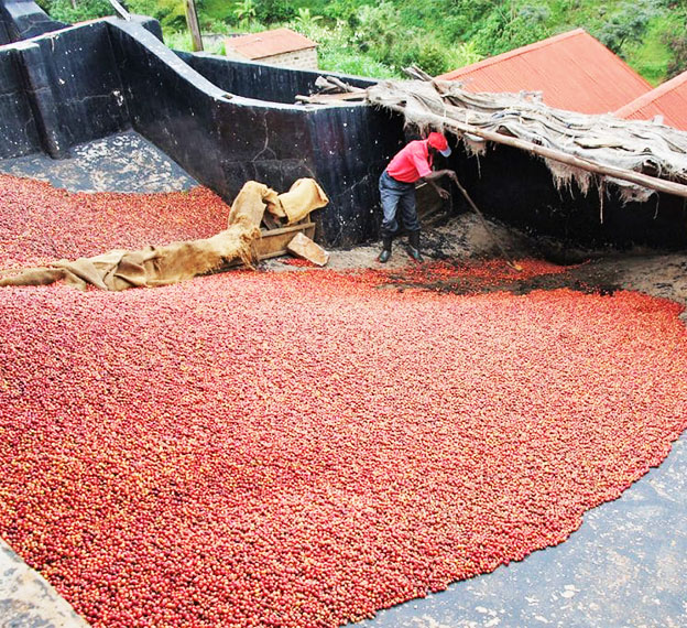 Fermantasyon sonrasında kahve çekirdekleri fermente müsilaj tabakasından ayrıştırılır, bu sırada düşük yoğunlukta olan kalitesiz çekirdekler de ayrıştırılır. Tüm bu işlem sonrasında temizleme ve ayrıştırma işlemi bitmiş çekirdekler kurutmak üzere yükseltilmiş kurutma yataklarına serilirler. Ortam sıcaklığına bağlı olarak kurutmalar 12 ila 20 gün sürmektedir. Günün sıcak saatlerinde ve gece nem ve yüksek sıcaklıktan korunmak için kahvelerin üzerleri örtülür.